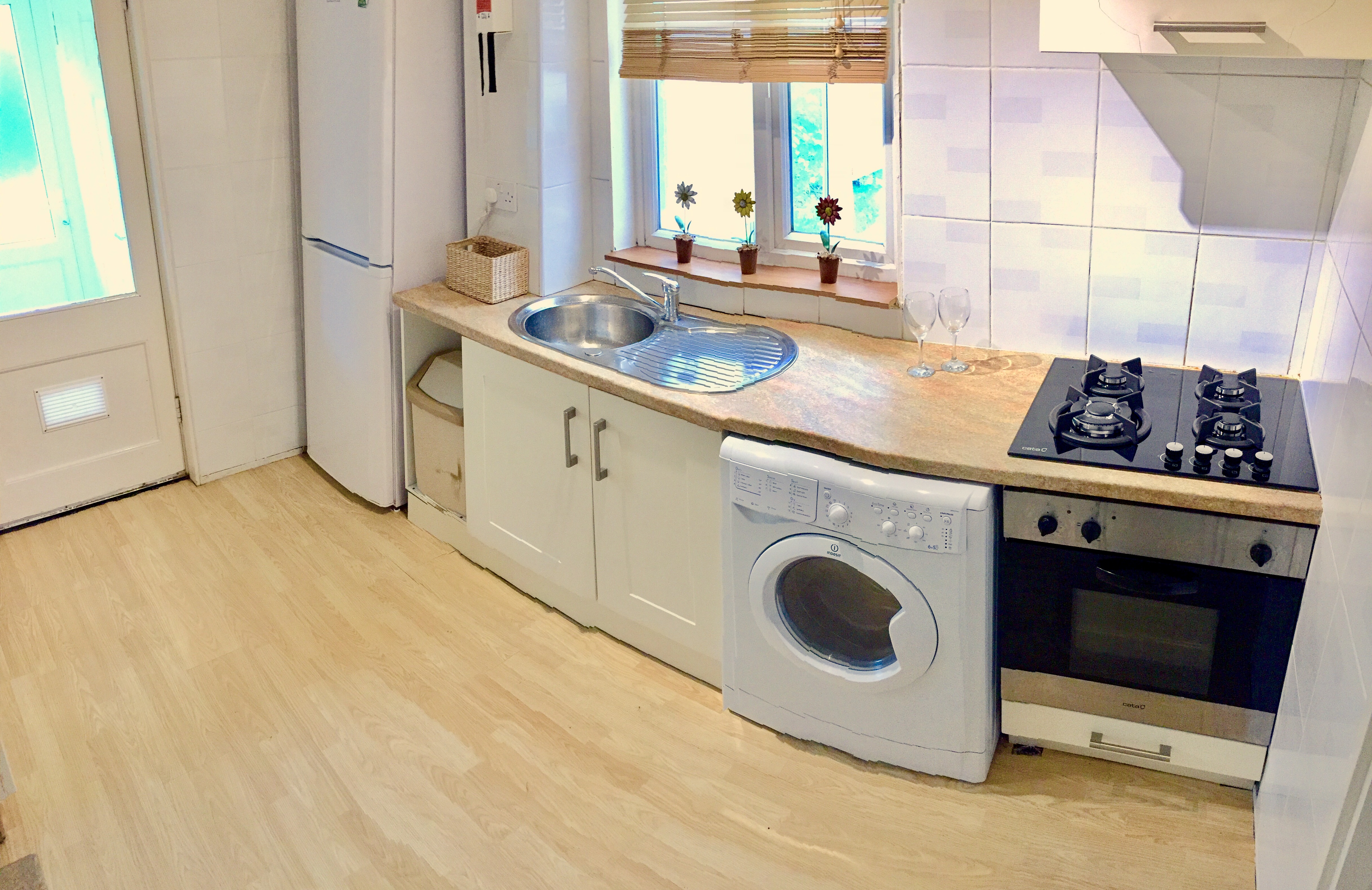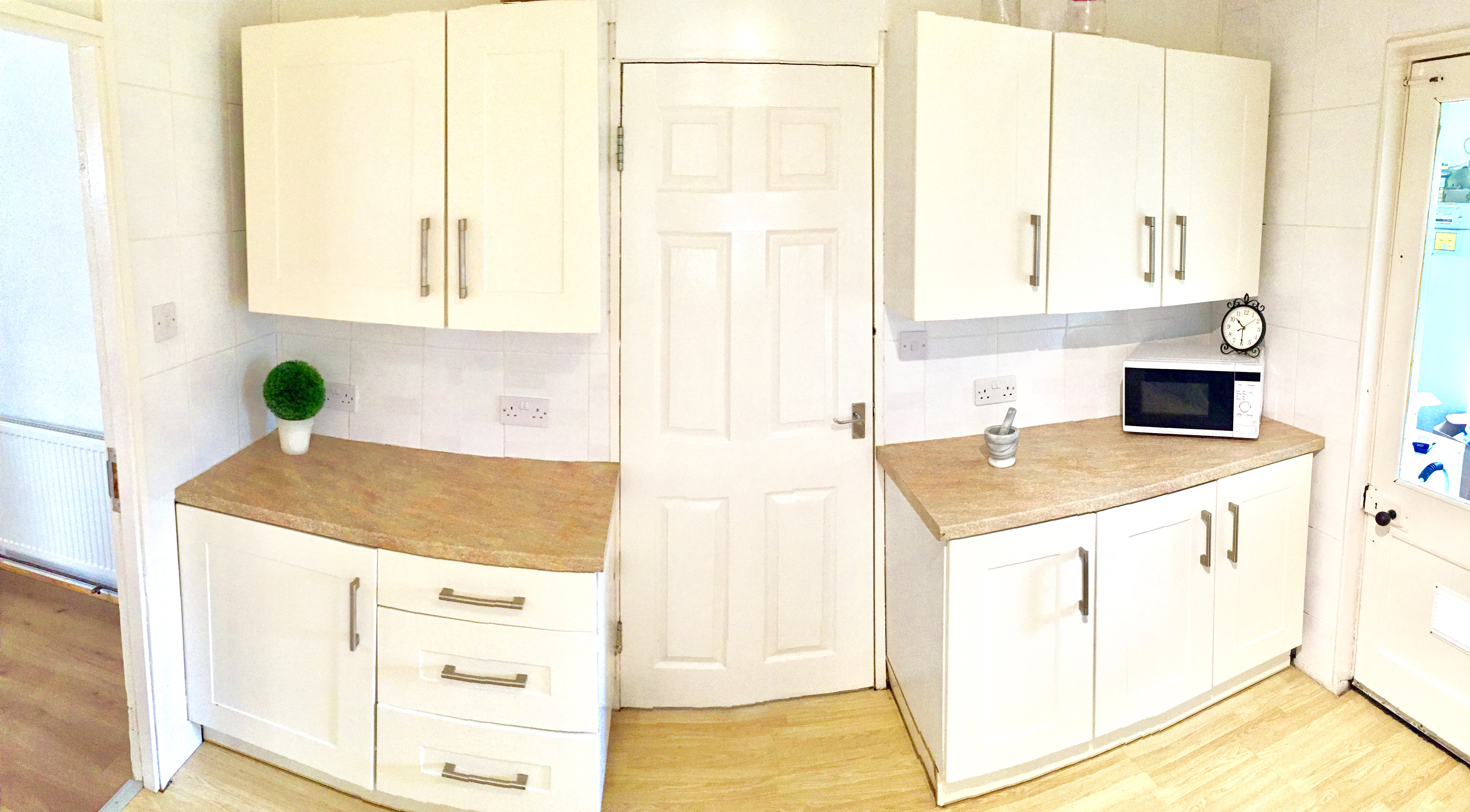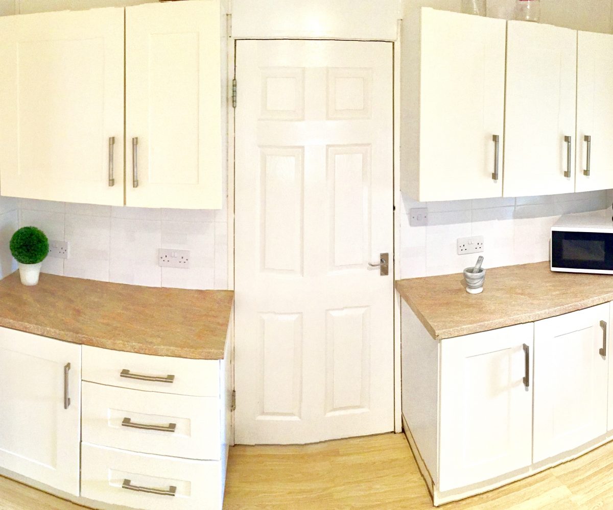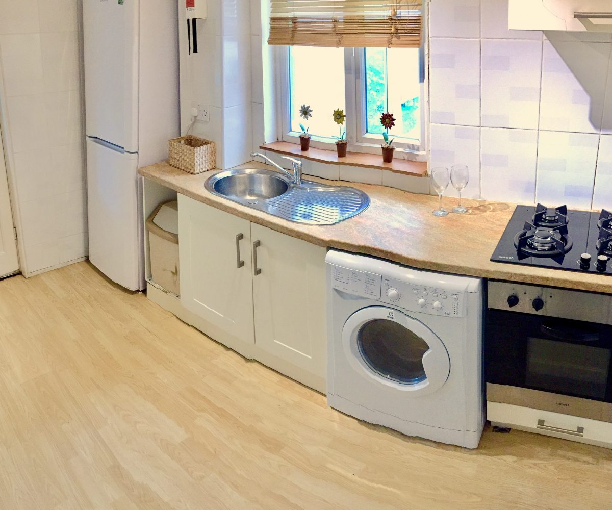 – Shared modern kitchen with washing machine, dryer, microwave