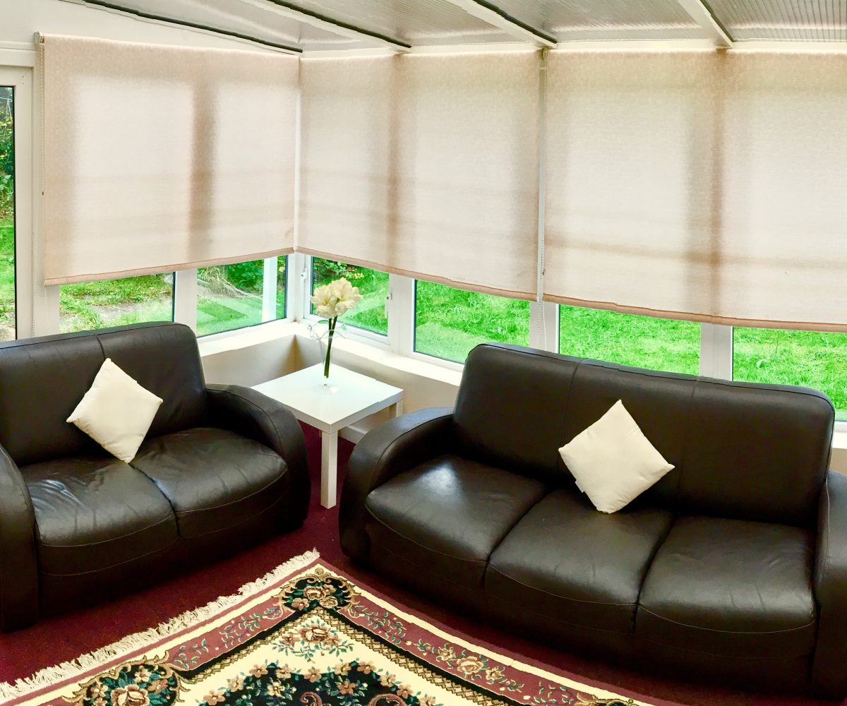 – Large conservatory with leather sofas